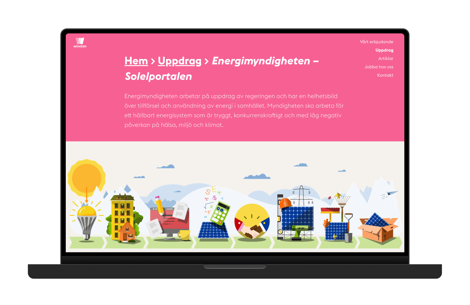 Brand update for digital design agency Winston DC, while employed at the agency. Winston DC were early in creating web design projects with high accessibility rating – long before it became mandatory in public procurements – so internal standards were set high regarding contrast and legibility as well as for technical accessibility such as screen readers and keyboard navigation.